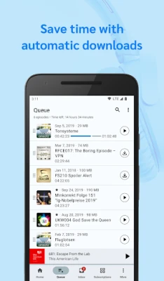AntennaPod zjednodušuje objevování a správu obsahu. Snadno přidávejte nové kanály prostřednictvím oblíbených adresářů, jako jsou Apple Podcasts, gPodder.net, fyyd a Podcast Index, nebo importujte soubory OPML a odkazy RSS/Atom. Mějte přehled o tom nejlepším z nejlepšího s možností označit si epizody jako oblíbené a snadno je vyhledávejte ve své historii či pomocí prohledávání názvů a popisů. S pokročilými funkcemi, jako je zapamatování poslední poslechové pozice a podpora zaheslovaných podcastů, je váš poslech vždy plynulý. Ovládejte přehrávání intuitivně z domovské obrazovky, oznámení nebo sluchátek, včetně Bluetooth, což vám dává svobodu pohybu.